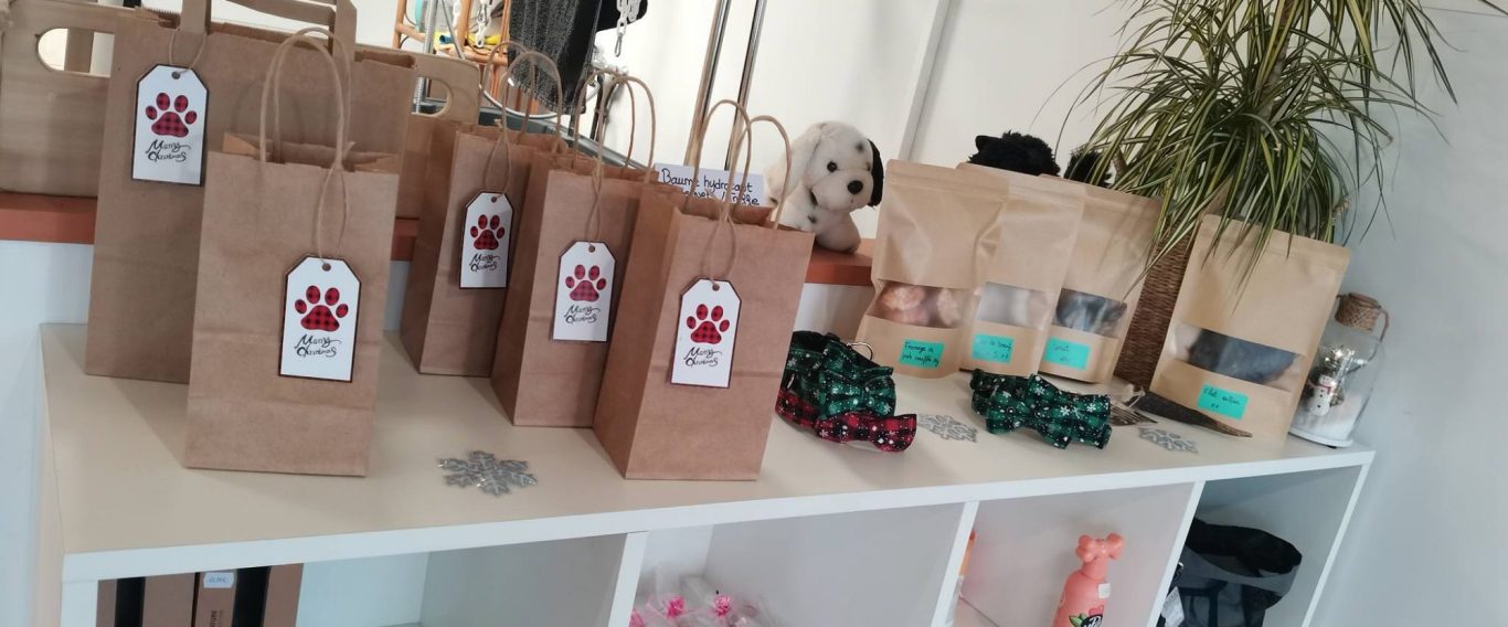 Vous pourrez retrouver dans un espace dédié à la vente, des produits cosmétiques pour chiens, des brosses, des jouets, de la sellerie ainsi que des friandises (100% naturelles).